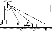 如图所示,物体A和B的质量均为m,且分别与轻绳连接跨过定滑轮,现用力拉物体B,使它沿水平面向右做匀速运动,物体B从C运动到D的过程中,物体A克服重力做功为W1,从D运动到E的过程中,物体A克服重力做功为W2。如果CD和DE的距离相等,在此过程中,绳子对物体A的拉力大小为T,下列说法中正确的是( )![]()