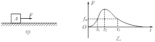 如图甲所示,静止在水平地面上的物块A,受到水平拉力F的作用,F与时间t的关系如图乙所示。设物块与地面间的最大静摩擦力fm的大小与滑动摩擦力大小相等。则![]()