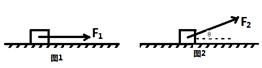 如图所示,在水平地面上用F1水平拉动质量为m的物体匀速运动x所做的功为W1,第二次用与水平地面成θ的F2拉动同一物体匀速运动x所做的功为W2;则有( )![]()
