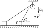 如图所示,质量为m的物体置于光滑水平面上,一根绳子跨过定滑轮一端固定在物体上,另一端在力F作用下,以恒定速度v0竖直向下运动.物体由静止开始运动到绳与水平方向夹角α=45°过程中,绳中拉力对物体做的功为( )![]()