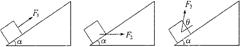 如图所示,分别用F1、F2、F3将质量为m的物体由静止沿同一光滑斜面以相同的加速度从斜面底端拉到斜面的顶端,物体到达斜面顶端时,力F1、F2、F3的功率关系为( )![]()