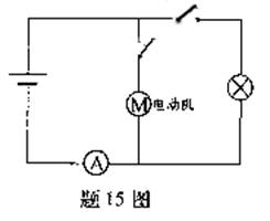 汽车电动机启动时车灯会瞬时变暗,如图15图,在打开车灯的情况下,电动机未启动时电流表读数为10 A,电动机启动时电流表读数为58 A,若电源电动势为12.5 V,内阻为0.05 Ω,电流表内阻不计,则因电动机启动,车灯的电功率降低了![]()
