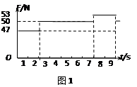 某同学为了研究超重和失重现象,将重为50N的物体带上电梯,并将它放在电梯中的力传感器上。若电梯由静止开始运动,并测得重物对传感器的压力F随时间t变化的图象,如图1所示。设电梯在第 1s末、第4s末和第8s末的速度大小分别为v1、 v4和v8,以下判断中正确的是![]()