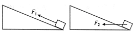 如图所示,分别用恒力F1、F2先后将质量为m的物体由静止开始沿同一粗糙的固定斜面由底端拉至顶端,两次所用时间相同,第一次力F1沿斜面向上,第二次力F2沿水平方向。则两个过程 ![]()