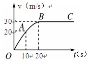 kg的汽车从静止沿平直公路启动的速度与时间图像如图所示,A点表示匀加速的最后时刻,B点表示汽车达到最大速度,设汽车受恒定阻力,g=10m/s2,则( )![]()