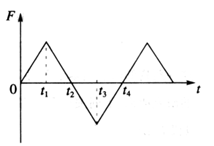 质点所受的力 F 随时间变化的规律如图所示,力的方向始终在一直线上。已知 t=0 时质点的速度为零。在图示的 t1、t2、t3 和 t4 各时刻中,哪一时刻质点的动能最大?( )![]()