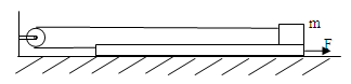 如图所示,一质量为M,长为L的木板,放在光滑的水平地面上,在木板的右端放一质量为m的小木块,用一根不可伸长的轻绳通过光滑的定滑轮分别与m、M连接,木块与木板间的动摩擦因数为μ。开始时木块和木板静止,现用水平向右的拉力F作用在M上,将m拉向木板左端的过程中,拉力至少做功为 ( )![]()