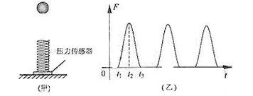 如图(甲)所示,质量不计的弹簧竖直固定在水平面上,t=0时刻,将一金属小球从弹簧正上方某一高度处由静止释放,小球落到弹簧上压缩弹簧到最低点,然后又被弹起离开弹簧,上升到一定高度后再下落,如此反复。通过安装在弹簧下端的压力传感器,测出这一过程弹簧弹力F随时间t变化的图像如图(乙)所示,则![]()