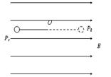 如图所示,一绝缘的长为L。两端分别带有等量异种电荷的轻杆,电量的绝对值为Q,处在场强为E的匀强电场中,杆与电场线夹角为60°,若使杆沿顺时针方向转过60°(以杆上某一点为圆心转动),则下列叙述正确的是![]()