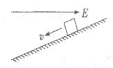 如图所示,在绝缘的斜面上方存在着沿水平向右的匀强电场,斜面上的带电金属块沿斜面滑下。已知在下滑的过程中,金属块动能增加了12J,金属块克服摩擦力做功8J,重力做功24J,下列判断中正确的是![]()