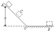 如图所示,物体从A处开始沿光滑斜面AO下滑,又在粗糙水平面上滑动,最终停在B处。已知A距水平面OB的高度为