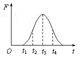 蹦床项目中,运动员从空中落下与蹦床接触后又被弹起,这 个过程中蹦床受到运动员对它的压力F随时间t的变化图像如图所示,其中t2、t4时刻F-t图线的斜率最大。假设运动员和蹦床受到的空气阻力和摩擦力不计。下列判断正确的有: ![]()