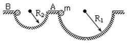 图中两个半径分别为R1和R2的光滑半圆轨道,且R1=2R2,质量同为m的小球A和B分别从槽口由静止下滑,当两球都滑到圆槽最低点时,下列说法中正确的是![]()