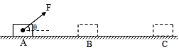 如图所示,一个质量为m=2.0kg的滑块静止放在水平地面上的A点,受到一个大小为10N,与水平方向成θ=37°角的斜向上恒力F作用开始运动,当物体前进L=1.0m到达B点时撤去F,滑块最终停在水平地面上的C点,滑块与地面间的滑动摩擦因数µ=0.2,求BC间的距离x。(cos37o=0.8,sin37o=0.6,g取10m/s2)