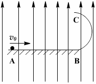 (12分)如图所示,光滑水平轨道与半径为R的光滑竖直半圆轨道在B点平滑连接。在过圆心O的水平界面的下方分布有水平向右的匀强电场。现有一个质量为m、电量为+q的小球从水平轨道上的A点由静止释放,小球运动到C点离开圆轨道后,经界面MN上的P点进入电场(P点恰好在A点的正上方,小球可视为质点,小球运动到C之前电量保持不变,经过C点后电量立即变为零)。已知A、B间的距离为2R,重力加速度为g。在上述运动过程中,