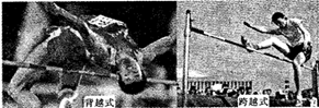 如图所示,质量为m的跳高运动员先后用背越式和跨越式两种跳高方式跳过某一高度,该高度比他起跳时的重心高出h,则他从起跳后至越过横杆的过程中克服重力所做的功( )![]()