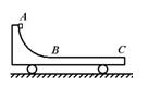 如图所示,水平光滑地面上停放着一辆质量为M的小车,其左侧有半径为R的四分之一光滑圆弧轨道AB,轨道最低点B与水平轨道BC相切,整个轨道处于同一竖直平面内。将质量为m的物块(可视为质点)从A点无初速释放,物块沿轨道滑行至轨道末端C处恰好没有滑出。设重力加速度为g,空气阻力可忽略不计。关于物块从A位置运动至C位置的过程,下列说法中正确的是![]()