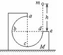 圆周的光滑轨道,a为轨道的最高点,de面水平且有一定长度。今将质量为m的小球在d点的正上方高为h处由静止释放,让其自由下落到d处切入轨道内运动,不计空气阻力,则( )![]()