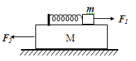 如图,一轻弹簧左端固定在长木块M的左端,右端与小木块m连接,且m、M及M与地面间接触光滑。开始时,m和M均静止,现同时对m、M施加等大反向的水平恒力F1和F2。在两物体开始运动以后的整个运动过程中,对m、M和弹簧组成的系统(整个过程中弹簧形变不超过其弹性限度),正确的说法是![]()