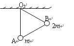 如图所示,一个由轻杆组成的等边三角形ABO的A点和B点分别固定着质量为m和2m的小球,三角形ABO可绕光滑的水平转轴O自由转动,现使OA处于竖直位置,OB与水平方向的夹角为300,此时将它们由静止释放,不考虑空气阻力作用,则( )![]()