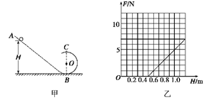 如图所示,竖直平面内的光滑轨道由轨道AB和圆弧轨道BC组成,将质量为m的小球从轨道AB上高H处的某点静止滑下,用力传感器测出小球经过C点时对轨道的压力F,改变H的大小,可测出相应的F大小,F随H的变化关系如图乙所示.取g=10m/s2则下列选择正确的是( )![]()