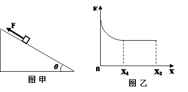 如图甲所示,在倾角为θ的光滑斜面上,有一个质量为m的物体在沿斜面方向的力F的作用下由静止开始运动,物体的机械能E随位移x的变化关系如图乙所示。其中0~x1过程的图线是曲线,x1~x2过程的图线为平行于x轴的直线,则下列说法中正确的是( )![]()