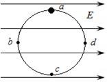 一半径为R的光滑绝缘圆环竖直放在水平向右的、场强为E的匀强电场中,如图所示,环上a、c是竖直直径的两端,b、d是水平直径的两端,质量为m的带电小球套在圆环上,并可沿环无摩擦滑动,已知小球自a点由静止释放,沿abc运动到d点时速度恰好为零,由此可知 ![]()