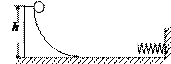 如图所示,弹簧的一端固定在竖直墙上,质量为m的光滑弧形槽静止在光滑水平面上,底部与水平面平滑连接,一个质量也为m的小球从槽高h处开始自由下滑 ( )