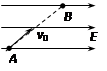 如图所示,在水平方向的匀强电场中,一个带负电的粒子以初速度v0从图中的A点沿着直线运动到B点,在此过程中,以下说法正确的是:( )![]()