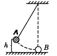 如图小球A和小球B质量相同,球B置于光滑水平面上。当球A从高为h处由静止摆下,到达最低点恰好与B相撞,并粘合在一起继续摆动,它们能上升的最大高度是:![]()