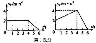 质量为0.2kg的物体,其速度在x、y方向的分量vx、vy,与时间t的关系如图所示,已知x、y方向相互垂直,则( )![]()