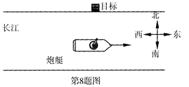 如图所示,一艘炮艇沿长江由西向东快速行驶,在炮艇上发射炮弹射击北岸的目标。要击中目标,射击方向应 ( )![]()