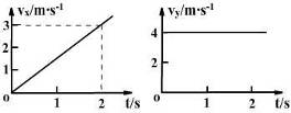 质量为1kg的物体在水平面内做曲线运动,已知互相垂直方向上的速度图象分别如图所示,下列说法正确的是![]()