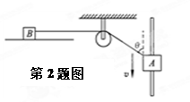 如图所示,沿竖直杆以速度v匀速下滑的物体A通过轻质细绳拉光滑水平面上的物体B,细绳与竖直杆间的夹角为θ,则以下说法正确的是![]()