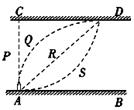 如图所示,直线AB和CD是彼此平行且笔直的河岸,若河水不流动,小船船头垂直河岸由A点匀速驶向对岸,小船的运动轨迹为直线P。设河水以稳定的速度沿平行河岸方向流动,且整个河流中水的流速处处相等,现仍保持小船船头垂直河岸由A点匀加速驶向对岸,则小船实际运动的轨迹是图中的( )![]()
