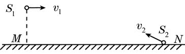 在水平地面上M点的正上方某一高度处,将球S1以初速度v1水平向右抛出,同时在M点右方地面上N点处,将球S2以初速度v2斜向左上方抛出,两球恰在M、N连线的中点正上方相遇,不计空气阻力,则两球从抛出到相遇过程中( ) ![]()