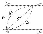 如图所示,直线AB和CD是彼此平行且笔直的河岸,若河水不流动,小船船头垂直河岸由A点匀速驶向对岸,小船的运动轨迹为直线P。若河水以稳定的速度沿平行河岸方向流动,且整个河流中水的流速处处相等,现仍保持小船船头垂直河岸由A点匀加速驶向对岸,则小船实际运动的轨迹可能是图中的( )![]()