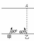 ,甲、乙船头均与岸边成600角,且乙船恰好能直达对岸的A点,则下列判断正确的是![]()
