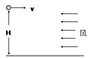 如图所示,质量为m=1.0kg的小球从H=20m高处水平抛出的小球,除受重力外,还受到水平风力作用,假设受到的风力的大小恒定不变,g=10m/s2。问:(1)有水平风力与无风时相比较,小球在空中的飞行时间是否相同?如不相同,说明理由;如果相同,求出这段时间。(2)若风的恒定阻力为Ff =0.25mg,要使小球恰好垂直于地面着地,则水平抛出的小球的初速度v0应为多大?