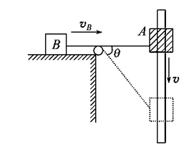(10分)如图所示,A物块以速度v沿竖直杆匀速下滑,经细绳通过定滑轮拉动物块B在水平方向上运动.当细绳与水平面夹角为θ时,求物块B运动的速度大小.