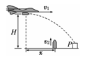 如图所示,我某集团军在一次空地联合军事演习中,离地面H高处的飞机以水平对地速度v1发射一颗炸弹轰炸地面目标P,反应灵敏的地面拦截系统同时以初速度v2竖直向上发射一颗炮弹拦截(炮弹运动过程看做竖直上抛),设此时拦截系统与飞机的水平距离为x,若拦截成功,不计空气阻力,则v1、v2的关系应满足 ( )