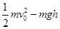 如图所示,质量为m的物体沿斜上方以速度v0抛出后,能达到的最大高度为H,当它将要落到离地面高度为 h 的平台时(不计空气阻力,取地面为参考平面),下列判断正确的是![]()
