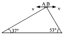 如图所示,在坡度一定的斜面顶点以大小相同的初速v同时水平向左与水平向右抛出两个小球A和B,两侧斜坡的倾角分别为37°和53°,小球均落在坡面上,若不计空气阻力,则A和B两小球的运动时间之比为:![]()