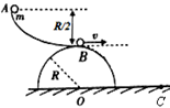 如图所示,光滑半球的半径为R,球心为O,固定在水平面上,其上方有一个光滑曲面轨道AB,高度为R/2.轨道底端水平并与半球顶端相切.质量为m的小球由A点静止滑下.小球在水平面上的落点为C,则( )![]()