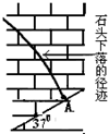 某同学在某砖墙前的高处水平抛出一石子,石子在空中运动的部分轨迹照片如图所示。从照片可看出石子恰好垂直打在一倾角为37o的斜坡上的A点。已知每块砖的平均厚度为20cm,抛出点到A点竖直方向刚好相距100块砖,则石子水平抛出的速度是( )![]()