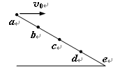 如图所示,斜面上有a、b、c、d、e五个点,ab=bc=cd=de,从a点以初速度v0水平抛出一个小球,它落在斜面上的b点,速度方向与斜面之间的夹角为θ。若小球从 a 点以2v0速度水平抛出,不计空气阻力,则下列判断正确的是![]()