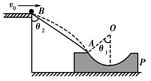 如图所示,P是水平面上的圆弧凹槽,从高台边B点以某速度v0水平飞出的小球,恰能从固定在某位置的凹槽的圆弧轨道的左端A点沿圆弧切线方向进入轨道.O是圆弧的圆心,θ1是OA与竖直方向的夹角,θ2是BA与竖直方向的夹角,则( )![]()