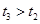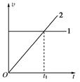 平抛运动可以分解为水平和竖直方向的两个直线运动,在同一坐标系中作出这两个分运动的v-t图线,如图所示。若平抛运动的时间大于2t1,下列说法中正确的是( )![]()