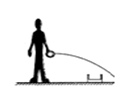 某人向放在水平地面的正前方小桶中水平抛球,结果球划着一条弧线飞到小桶的前方(如图所示)。不计空气阻力,为了能把小球抛进小桶中,则下次再水平抛时,他可能作出的调整为![]()
