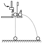 平抛物体的运动规律可以概括为两点:一是水平方向做匀速直线运动; 二是竖直方向做自由落体运动.为了研究平抛物体的运动,可做下面的实验:如图所示,用小锤击打弹性金属片,A球水平飞出,同时B球被松开,做自由落体运动.两球同时落到地面.则这个实验( )![]()